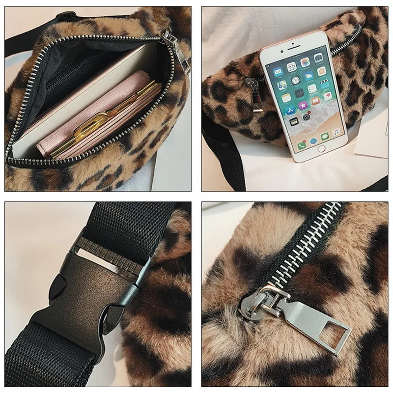 .Gallery of Aosbos Faux Fur Running Waist Packs Women Fanny Leopard Vintage Belt Chest Bag Travel Small Phone Pouch for Female Drop Shipping