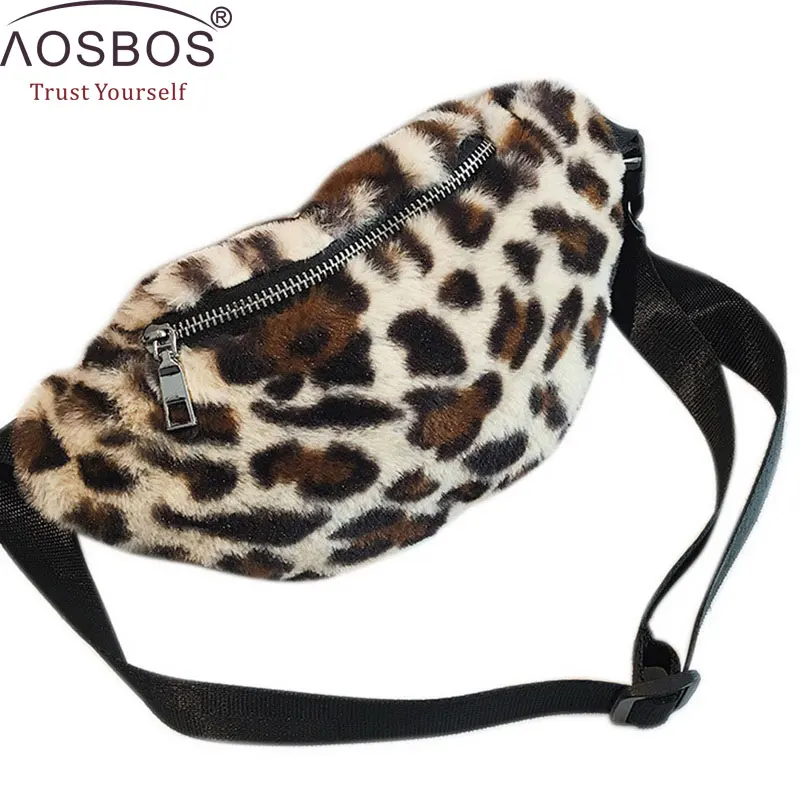 Price Description of Aosbos Faux Fur Running Waist Packs Women Fanny Leopard Vintage Belt Chest Bag Travel Small Phone Pouch for Female Drop Shipping